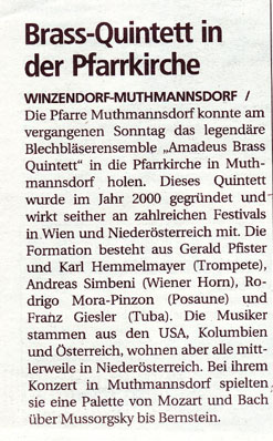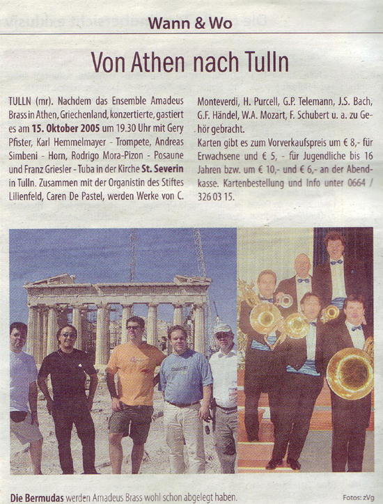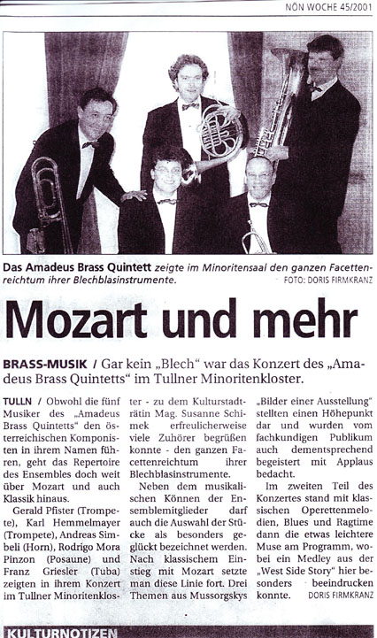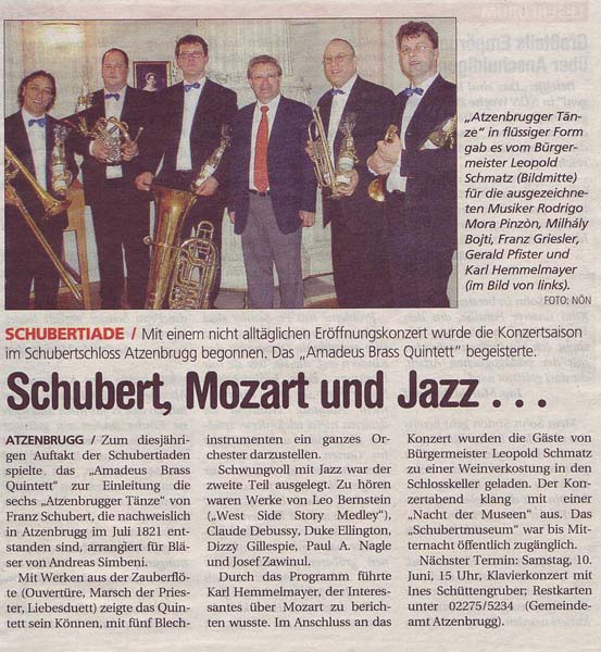 Brass Quintett“ mit den Altlengbachern Gerald Pfister und Rodrigo