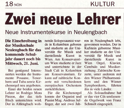 Erfolg des Orgelfestes Neulengbach 2000 findet auch heuer wieder ein Orgelfest