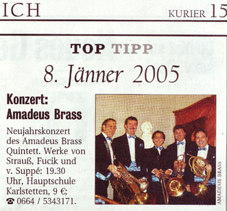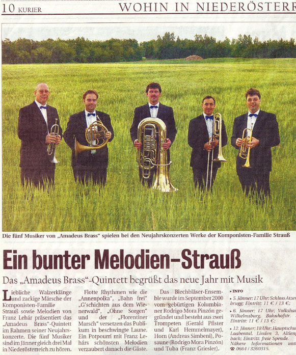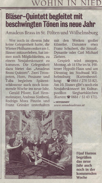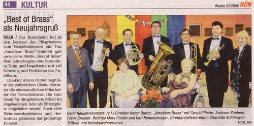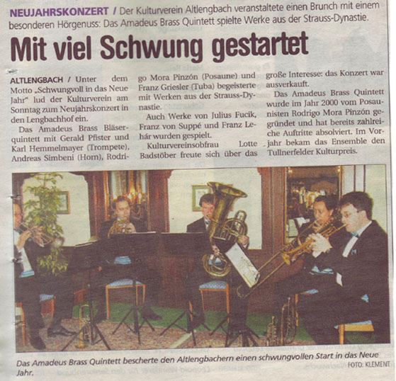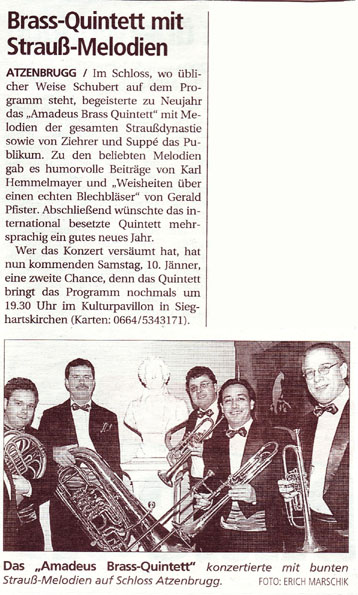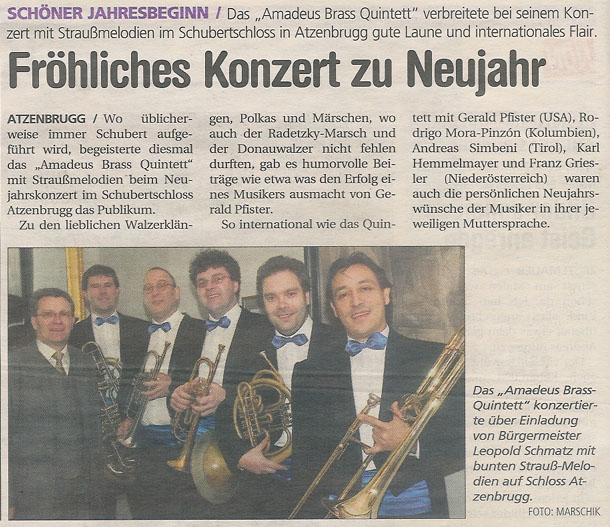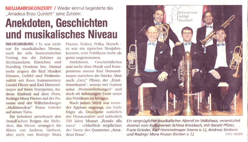 Amadeus Brass Quintett. Sie brachten ihr Neujahrskonzert am 6. Jänner