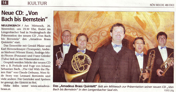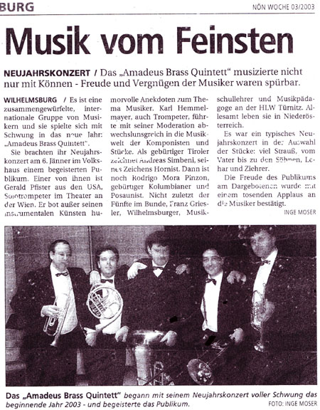 Das „ Amadeus Brass Quintett“ begrüßte 2003