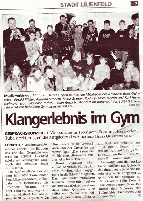 Kolumbien und dem Tubisten Franz Griesler. Die in Niederösterreich